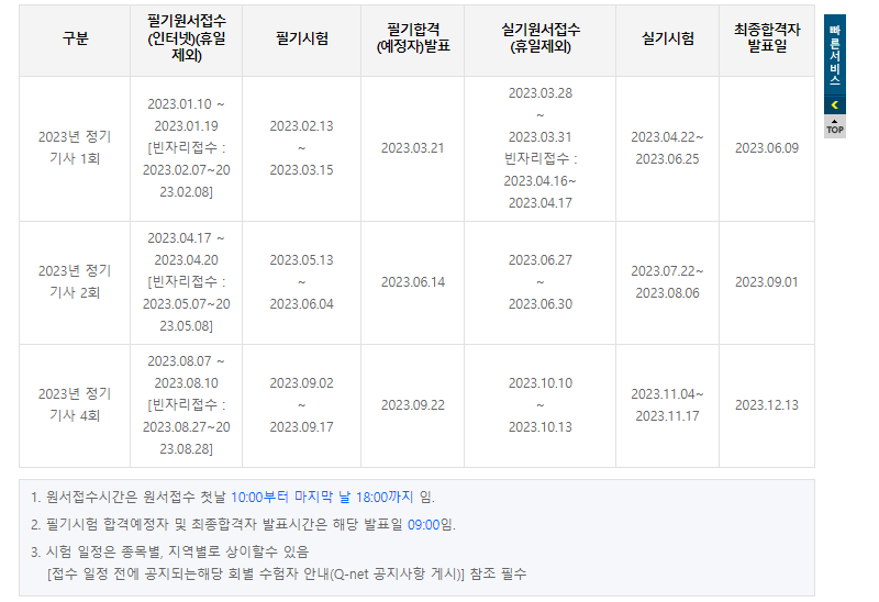 건설안전기사 시험은 1,2,4회에 예정되어있습니다.