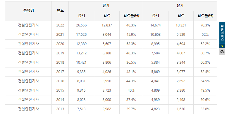 2. 건설안전기사 합격률 및 난이도