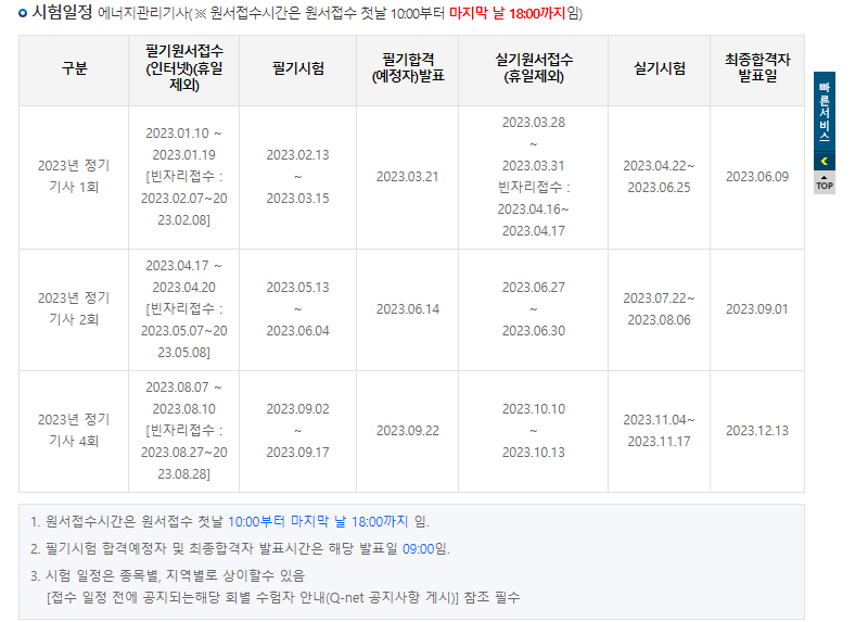 에너지관리기사는 1,2,4회차에 시험이 있습니다.