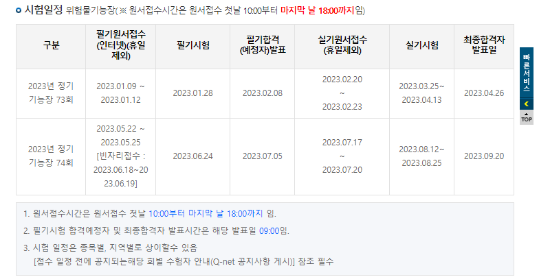 2023년 위험물기능장 시험은 73회, 74회 시험이 예정되어있습니다.