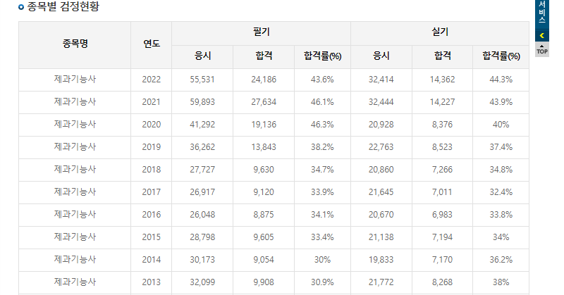 - 실기시험 합격률