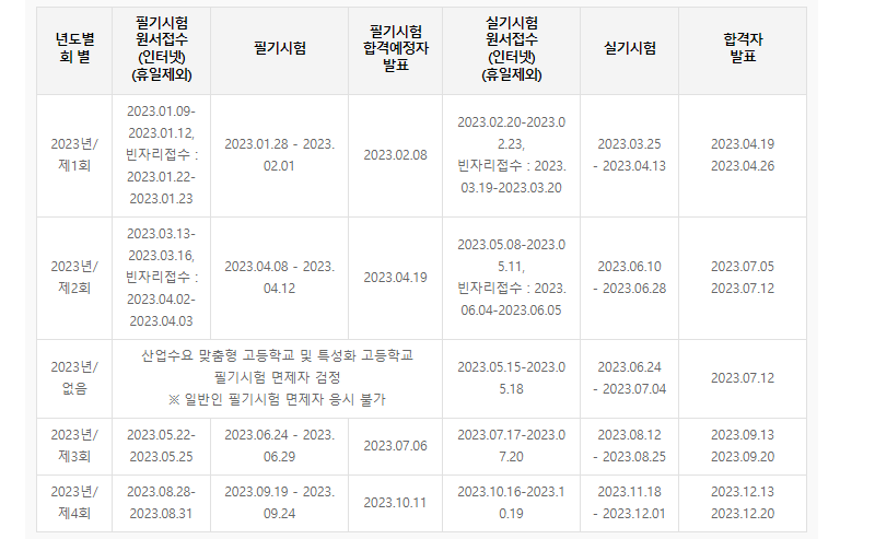 2023년 기능사 검정시행일정 (1회차 ~ 4회차)